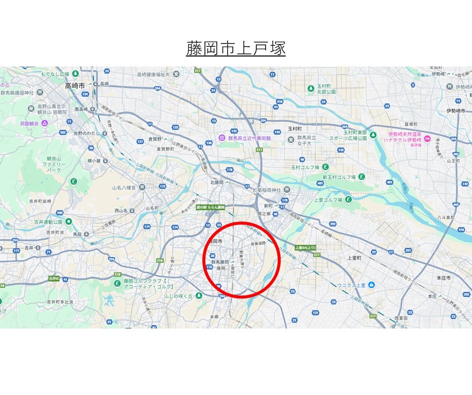 本物件は、群馬県南部の藤岡市・上戸塚エリアに所在し、自然環境と生活利便性のバランスに優れた住宅地です。周辺には日常生活に必要な商業施設や公共施設が揃い、ファミリー層を中心に落ち着いた居住環境が形成されています。藤岡市は関越自動車道・上信越自動車道へのアクセスも良く、県内主要都市である高崎市や前橋市への移動もスムーズで、通勤・通学圏として安定した需要があります。