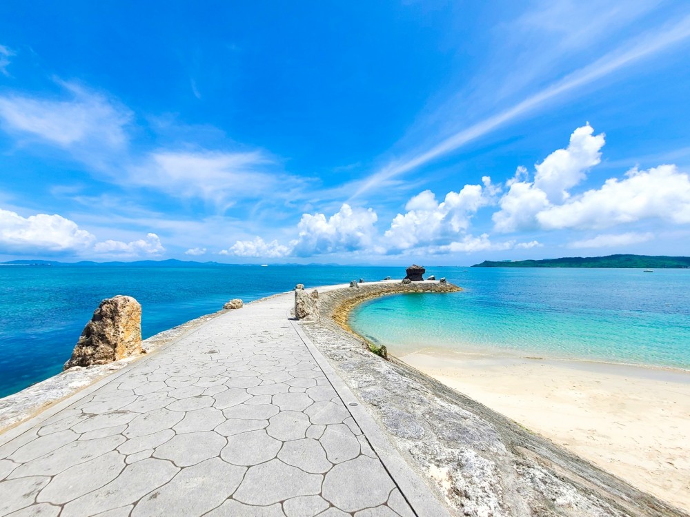 浜比嘉島は那覇空港より車で約1時間、沖縄本島より海中道路(橋)と浜比嘉大橋を渡った先にある、外周およそ7kmほどの小さな離島です。