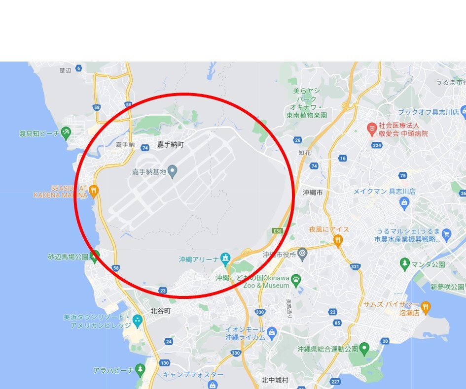 沖縄本島中部の嘉手納町・沖縄市・北谷町にまたがる嘉手納飛行場は、約3,700mの滑走路を2本有し、その面積は日本最大級の羽田空港の約2倍に相当します。日本のみならず米国にとっても**「極東最大級の空軍基地」**として、国防上きわめて重要な役割を担っています。