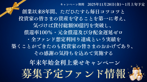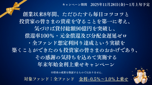一口1万円からの少額投資が可能なため、投資が初めての方も気軽に楽しむことができます。