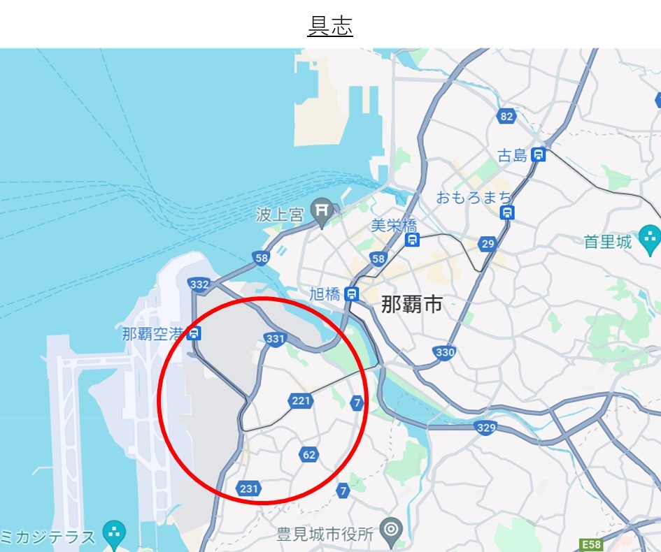 今回の担保物件の軍用地は空・那覇基地にあります。この航空自衛隊那覇基地は、那覇市の中心から南西約5kmに位置し、南西防衛区域における唯一の航空基地として重要な役割を果たしています。基地の面積は、約209万㎡であり、航空自衛隊の13個の部隊等のほか、陸上自衛隊第15ヘリコプター隊及び海上自衛隊第5航空群という陸海空自衛隊が混在する特色のある基地です。また、飛行場地区は、国土交通省が管理する官民共用空港であり、長さが3,000m、幅が45mの滑走路1本と、2020年3月に供用開始となった長さ2,700m、幅が60mの増設滑走路1本の合計2本の滑走路を有しています。那覇基地司令は、第9航空団司令が兼務しており、基地施設管理のほか、警備、消防など各種の基地業務を行っています。本件地域において返還予定もありません。